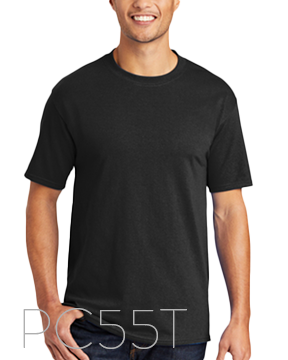 5.5oz. 50/50 cotton/poly Made with up to 5% recycled polyester from plastic bottles Rib knit collar Back neck tape