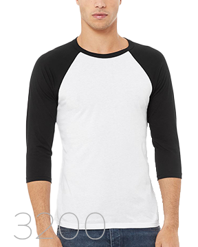 3.6 oz 52/48 airlume combed and ringspun cotton/polyester, 40 singles Triblends are 3.8 oz., 50/25/25 polyester/airlume combed and ringspun cotton/rayon, 40 singles Black Heather is 4.2 oz., 90/10 airlume combed and cotton ringspun cotton/polyester Marbles are 4.0 oz., 91/9 polyester/airlume combed and ringspun cotton, 32 singles Contrast raglan sleeves and collar Retail fit, side seams Body color first / Sleeve color second Tear-away label View full shirt swatches and size chart here