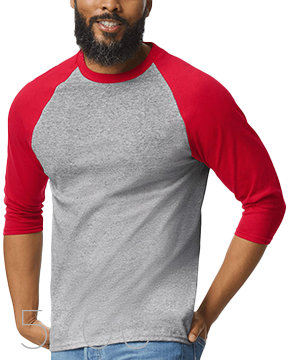 5.3 oz 100% cotton, 20 singles Sport Grey (Two tone) are 90/10 cotton/polyester Classic fit Classic width, rib collar 3/4 raglan sleeves Tear away label