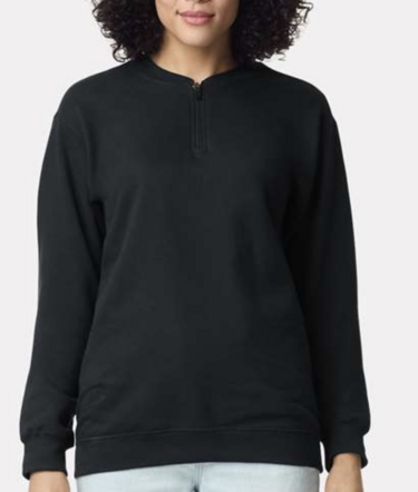 8.4 oz./yd² (US), 14 oz./L yd (CA), 80/20 ring-spun cotton/polyester, 20 singles Sport Grey is 75/25 cotton/polyester Softstyle Midweight Fleece features a cozy, brushed interior and a 100% ring-spun cotton face, ideal for a variety of cotton friendly decorating techniques Classic fit 1x1 rib with spandex, varsity collar, cuffs and bottom band Reverse coil color-matched locking zipper 18" space between bottom of zipper and waistband on size Large Tear away label